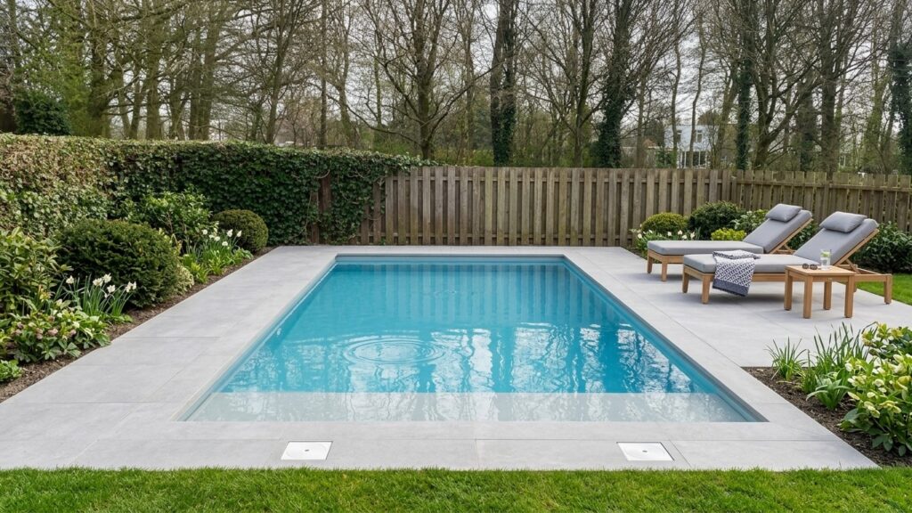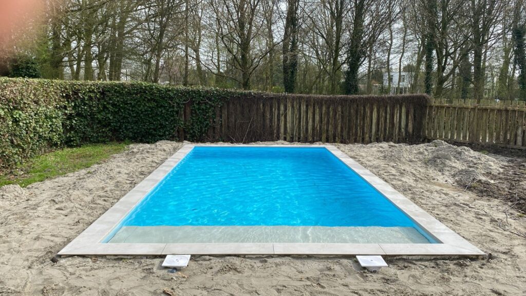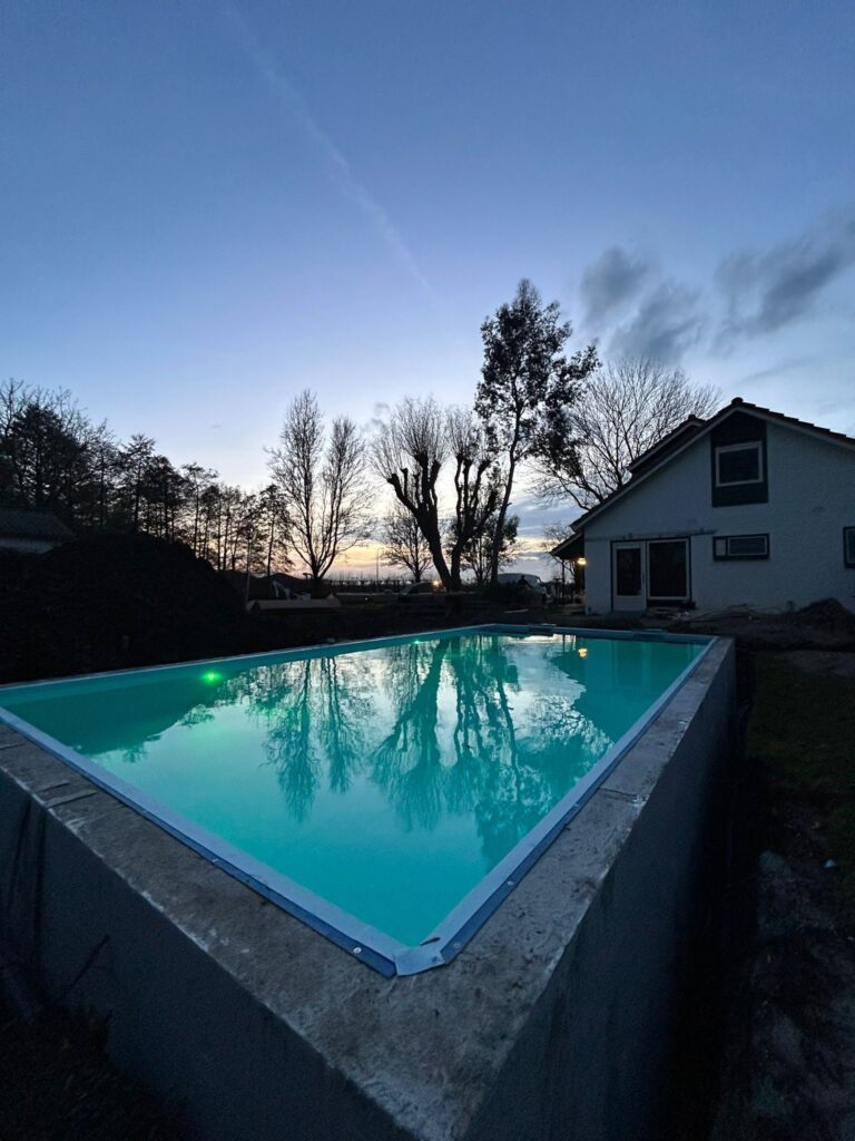 De afwerking bepaalt de uitstraling van het zwembad. In Project Dronten is gekozen voor een strakke en duurzame afwerking die zorgt voor waterdichtheid en comfort. De randen zijn netjes afgewerkt zodat het zwembad perfect aansluit op de omgeving.