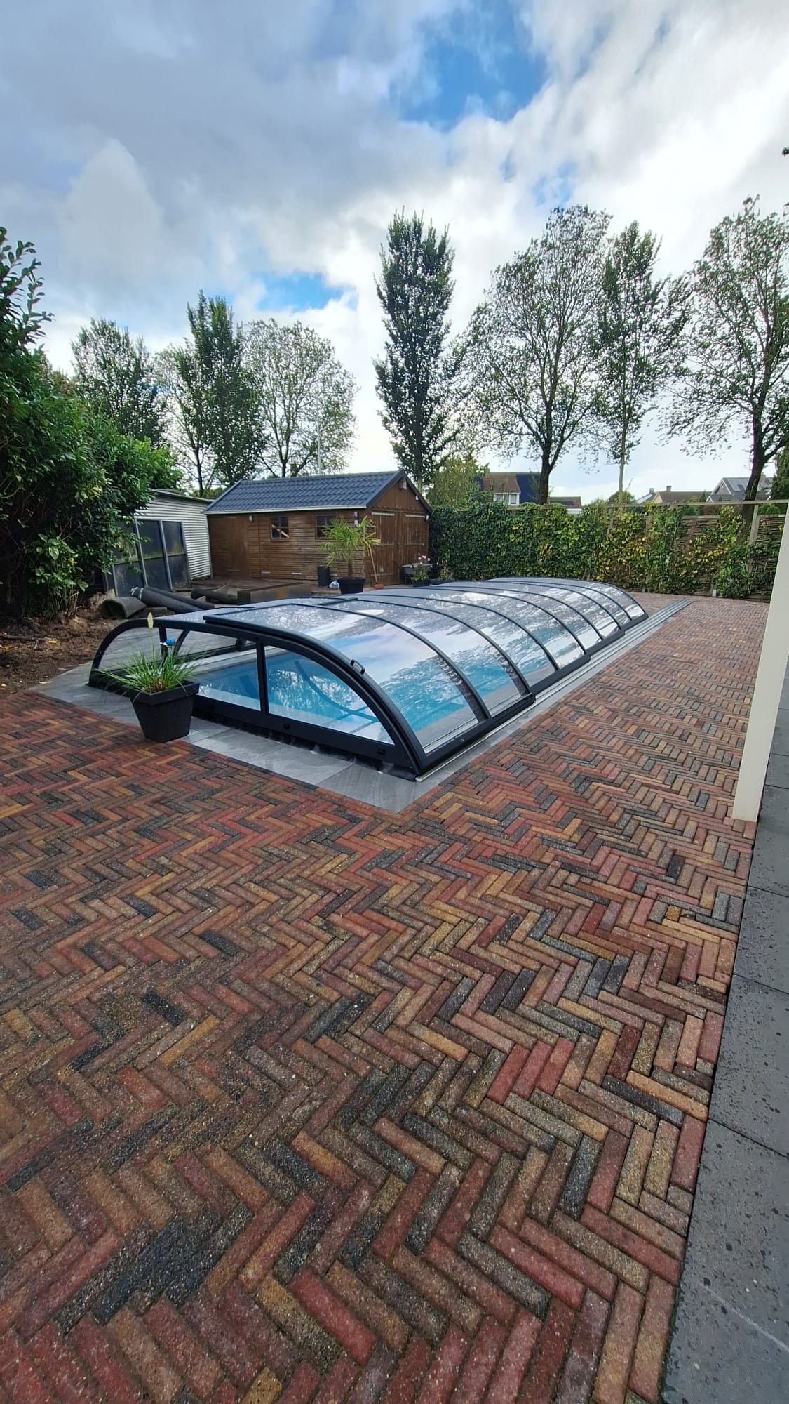De technische installatie is ingericht voor een zoutwatersysteem. Dankzij zouthydrolyse wordt het water op een duurzame en milieuvriendelijke manier behandeld. Dit zorgt voor helder en zacht zwemwater, zonder de nadelen van traditioneel chloorgebruik. Om het comfort nog verder te vergroten, is er in samenwerking met een gespecialiseerde leverancier een overkapping geplaatst. Deze beschermt het zwembad tegen weersinvloeden, vermindert vervuiling en verlengt het zwemseizoen aanzienlijk.