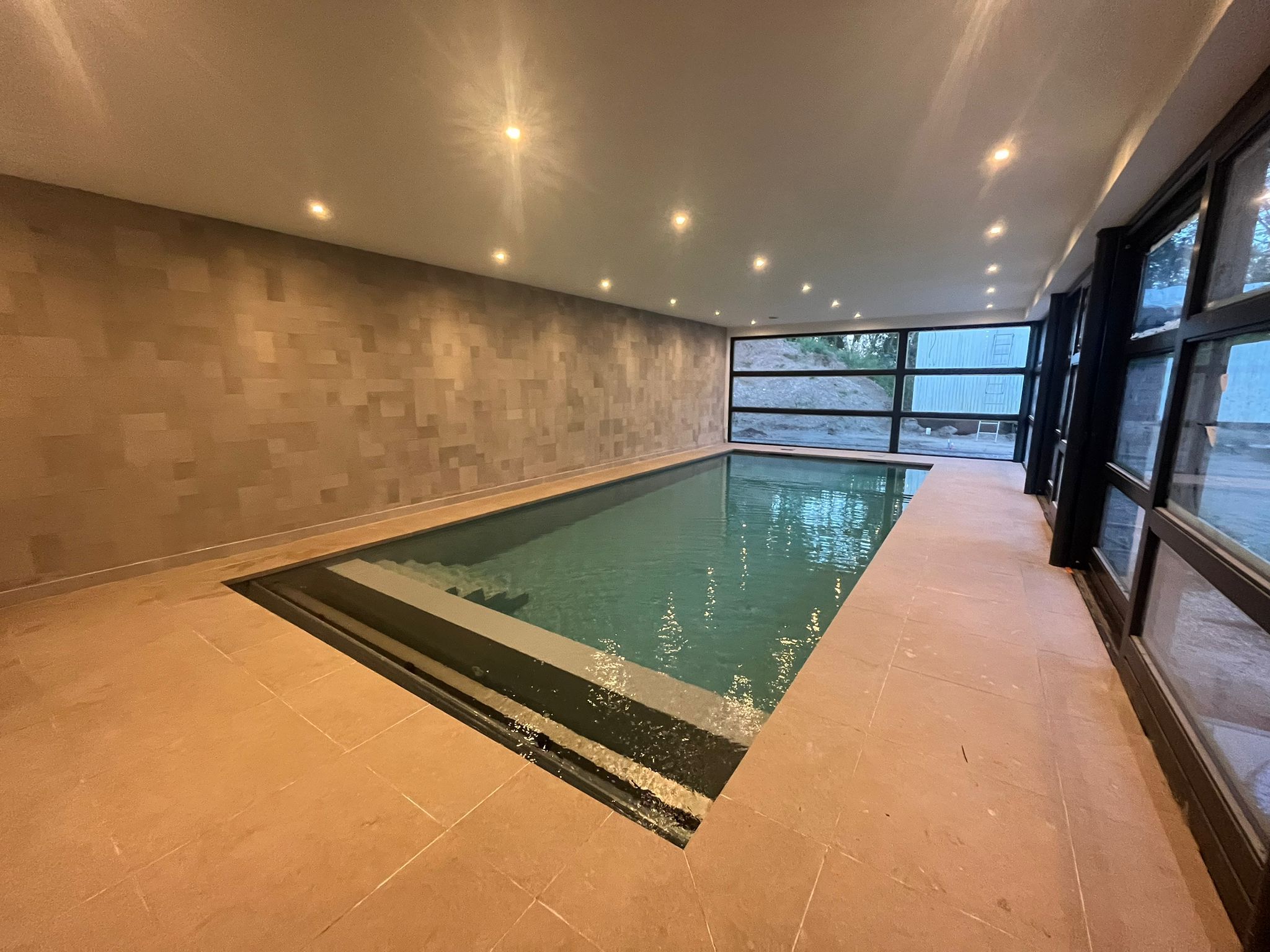 Om het zwembad nog meer comfort en uitstraling te geven, is er een plage aangelegd: een ondiep strandgedeelte dat ideaal is om te loungen of te spelen. Daarnaast is het zwembad voorzien van een elektrische lamellenafdekking. Deze moderne oplossing verhoogt de veiligheid, voorkomt warmteverlies en zorgt voor een aanzienlijke energiebesparing.